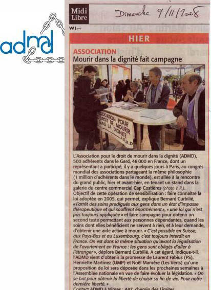 J'ai voulu le lire ( il est très vite lu ) car il est question du " droit de mourir dans la dignité " . Incontestablement , il est d'accord et s'il fait ce qu'il écrit , il choisira le jour et l'heure .