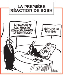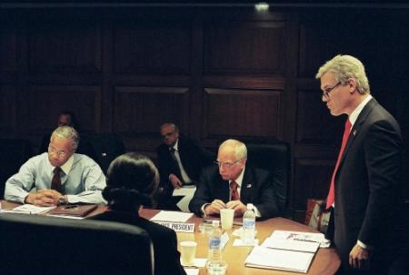 Ou les réunions de travail pendant lesquelles ce pauvre( ! ) G.W .Bush veut absolument trouver des armes de destruction massive chez Saddam . J'ai trouvé là certaines situations ridicules qui m'ont beaucoup intéressée .