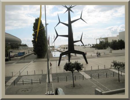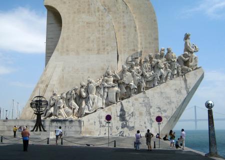 Plus loin , après avoir passé le pont , le monument des découvertes !