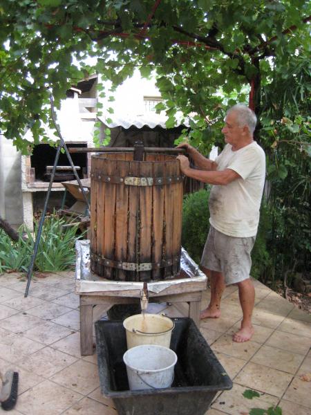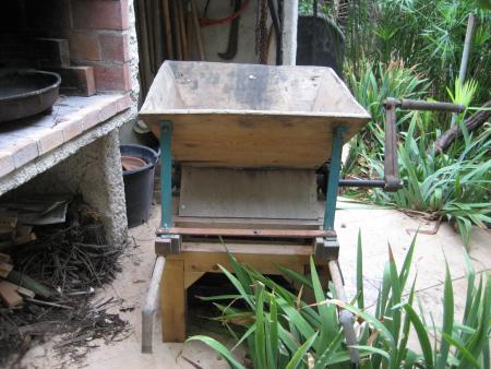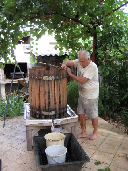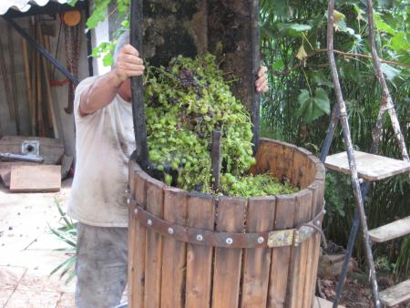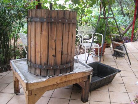 D'abord , préparation du matériel . Pressoir et fouloir