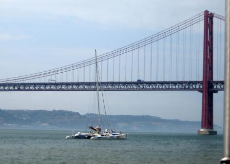 Dès le départ , on aperçoit au loin le fameux pont de 25 avril qui traverse le Tage sur une longueur de 3 km 50