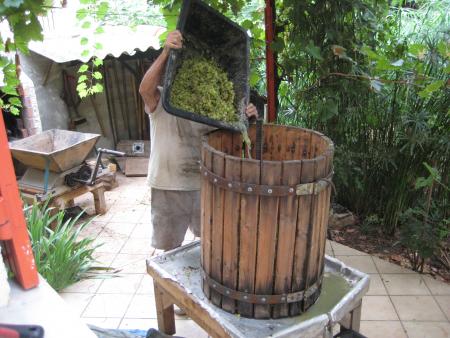 Puis le grain écrasé vient dans le pressoir . Grosse récolte
