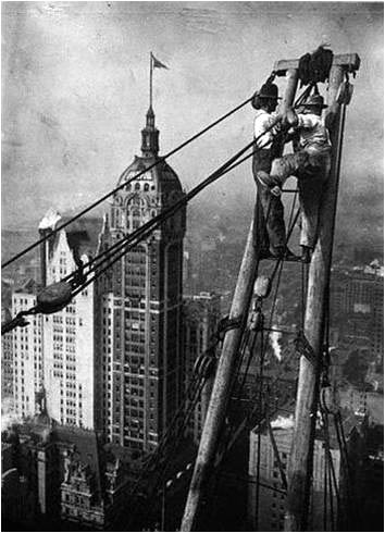 Ces ouvriers participaient à la construction des gratte-ciels entre 1920 et 1935 .