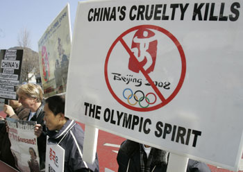 Faut-il boycotter les Jeux Olympiques qui vont avoir lieu en Chine ? Sous l'émotion je répondrais brutalement : OUI , bien sûr ! Le dalaï-lama en exil en Inde depuis 49 ans , , dénonce la répression chinoise au Tibet et parle " des violations énormes et inimaginables des droits de l'homme commises par la Chine au Tibet " |