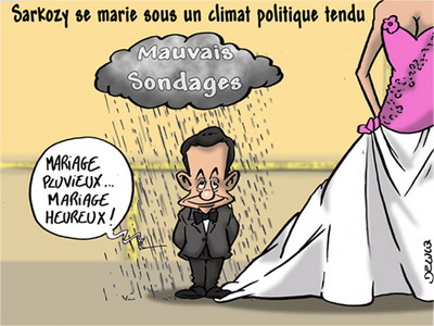 " Ce mariage éclair aidera-t-il le Président à remonter dans les sondages ? Cette chute dans les sondages pourrait- elle expliquer la décision de Sarkozy de mettre fin aux gros titres de sa vie privée ." |