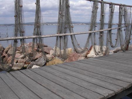 Sur les berges de l'étang , les petites embarcations sont prêtes à partir , mais en attendant les petites heures du matin , les filets sèchent tranquillement .