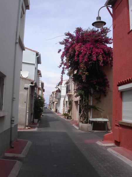 Les rues de cet adorable quartier de Sète sont toutes perpendiculaires et parallèles ! Rien que des petites maisons calmes et coquettes , aux couleurs vives et fraîches , pas de bruit , pas de voitures ou très peu , des treilles qui traversent d'un côté à l'autre de la rue , des massifs de fleurs plus hauts que les habitations .