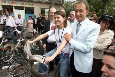 Le maire de Paris a inauguré le système de vélos en libre service " VELIB' " .
