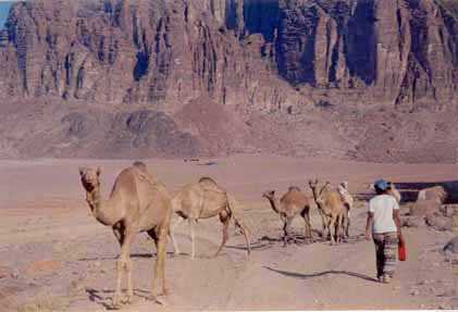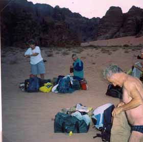 5 heures du matin , après notre première nuit passée à la belle étoile .Les nuits dans le Wadi Rum ne sont pas froides du tout . Un simple duvet sur le sable nous suffisait . Attention tout de même aux scorpions mais c'est très rare et nous avions ce qu'il fallait . Ces nuits fabuleuses étaient pleines d'étoiles filantes et de rêves merveilleux .