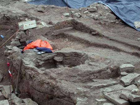 Un puit à côté d'une maison . Il est absolument intact . On doit en faire un moulage pour le conserver , car le démonter pour le remonter dans un musée est trop risqué.
