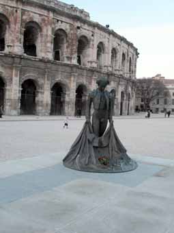 La statue de Christian Montcouquiol , le célèbre matador Nîmois Niméno II , est revenue sur le forum mais pas à la même place . Elle est maintenant face à l'entrée de la ville par la rue de la République .