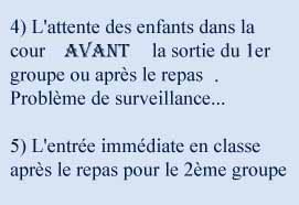 Dans ma carrière il m'est arrivé quelques fois de surveiller la cantine à l'école . J' étais instit. et j'ai dû y manger 1 ou 2 fois , pas plus , ! J'espère que ça a changé depuis... (quoi que... ) !
