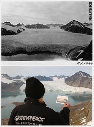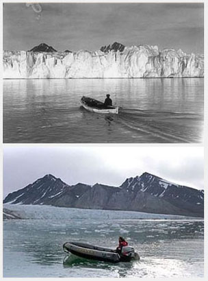 j'ai trouvé sur internet des photos impressionnantes à propos du réchauffement de la planète . Entre les photos supérieures et celles qui sont au dessous, il s'est écoulé 80 ans à peine ! C'est époustouflant et effrayant