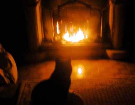 Et avec mon chat , nous regardions le feu dans la cheminée !
