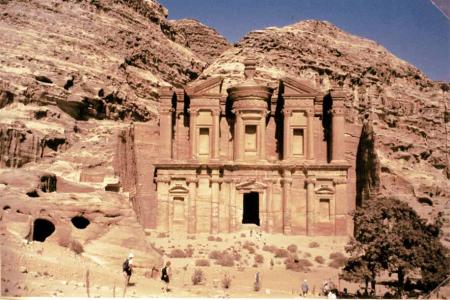 C'était la rue principale de Pétra . A l'époque romaine , elle indiquait la direction Nord-Sud . Dans le fond , les tombes royales toujours creusées dans la roche marbrée et rose .